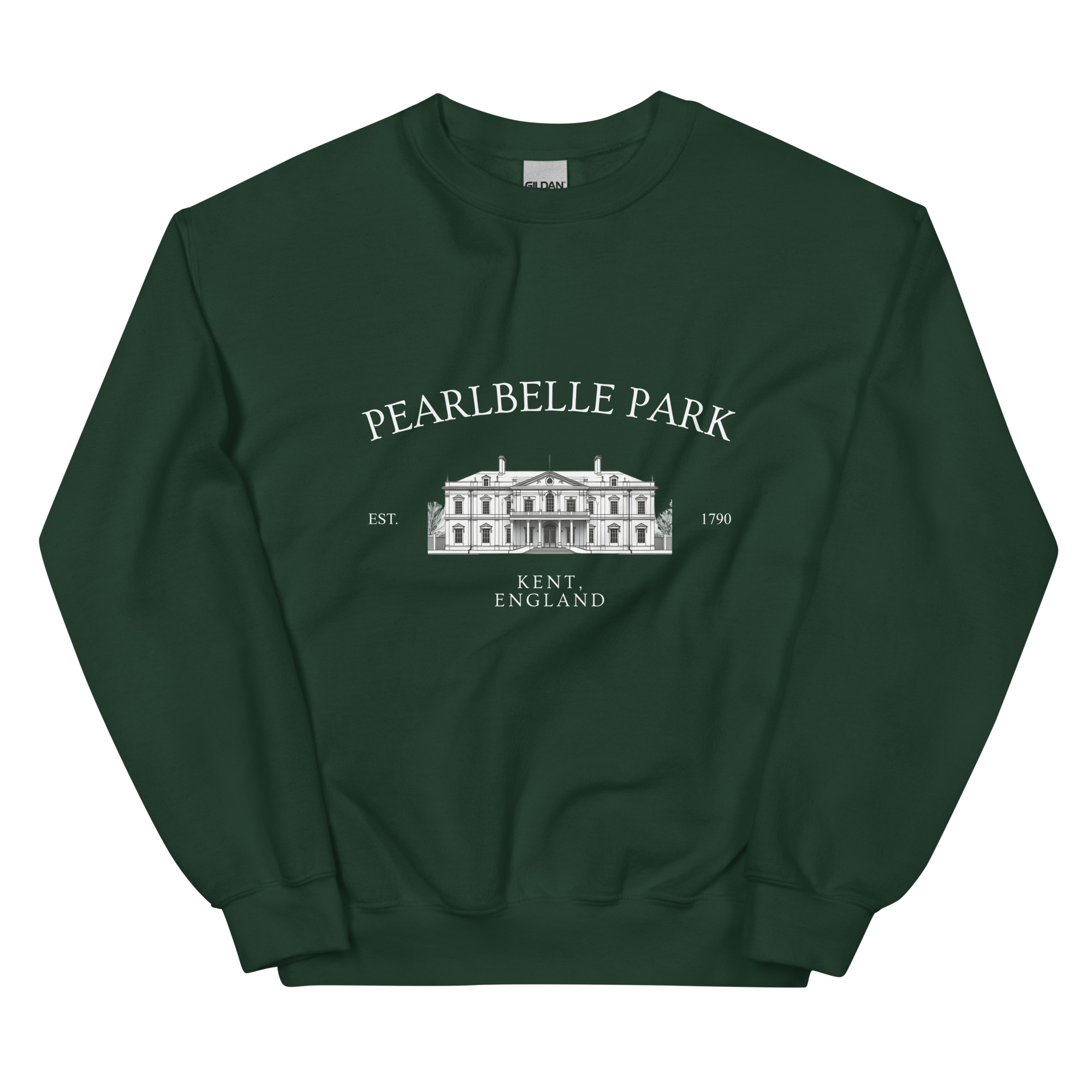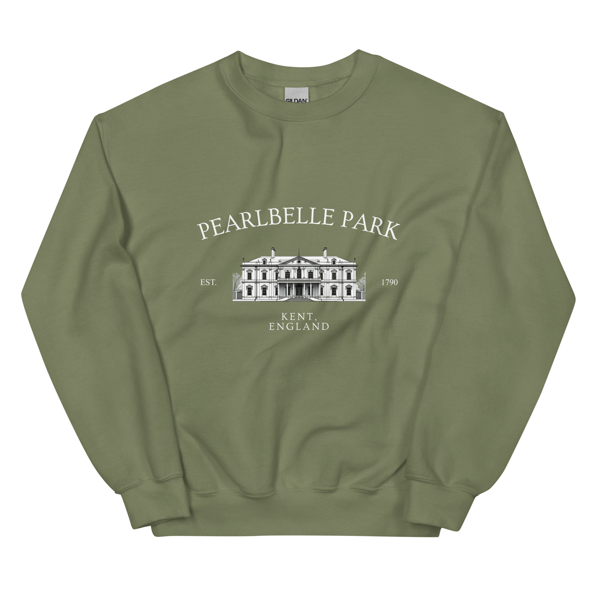 A sturdy and warm sweatshirt with “Pearlbelle Park – Kent, England” printed on the front as well as an “est.” date. Support The Chronicles of Alice & Ivy!